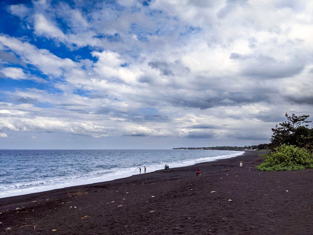 As soon as we left, we encountered Ubud just after the rains. Lots of super-heavy traffic. With Ubud, you’ve sort of got to go and trust everyone to get out of your way. This was counter to every single organised neurone in Dalma’s brain, so she had a hard time of it and got stuck at a corner. Still, everything eventually got going, and we headed first to Gianyar where we picked up some petrol and then headed on to Klungkung where we had lunch at a little wayang on a black sand beach. Some kind of soup with meatballs. Delicious.